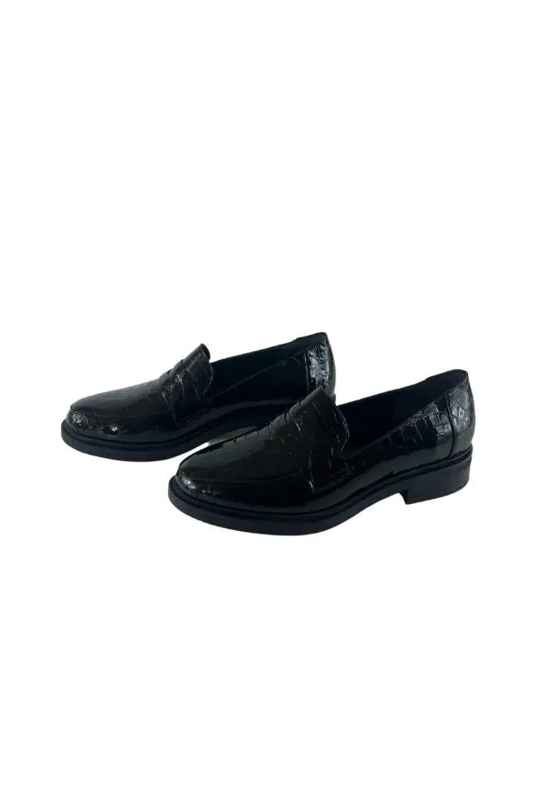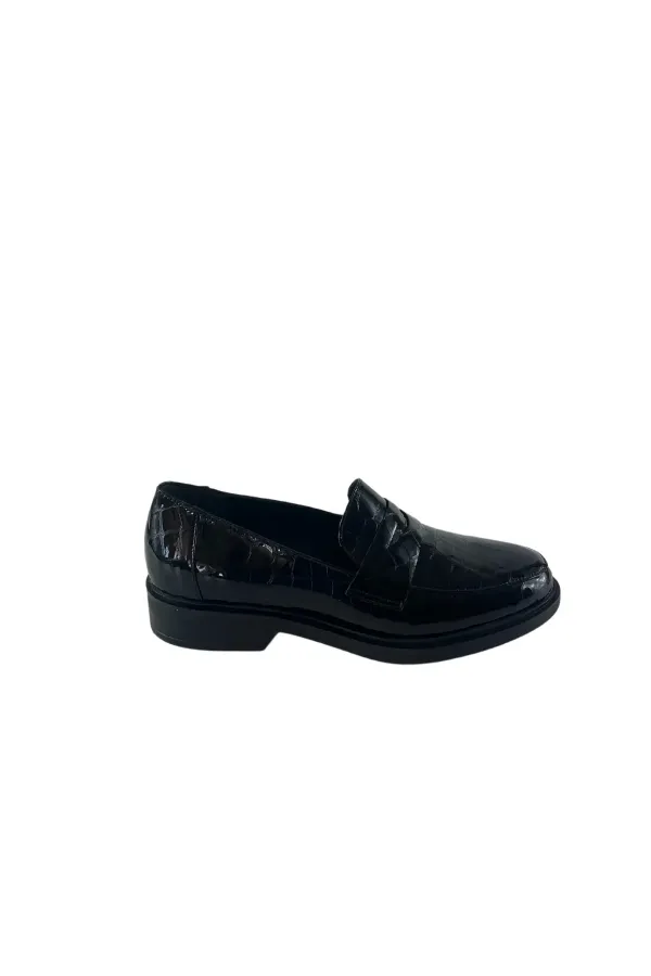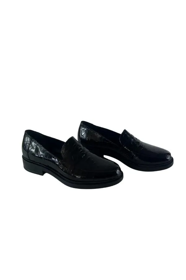 0021 Siyah Kroko Kadın Loafer Ayakkabı