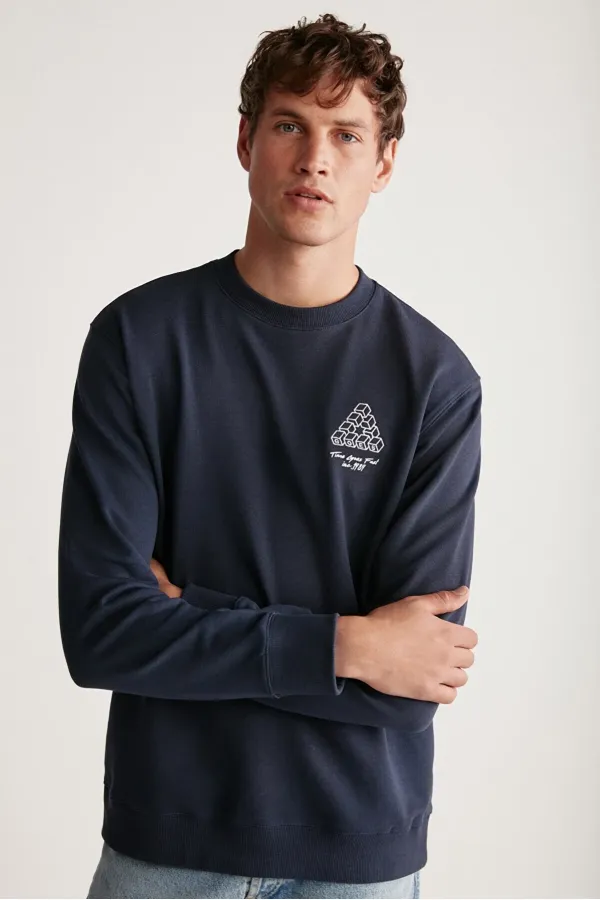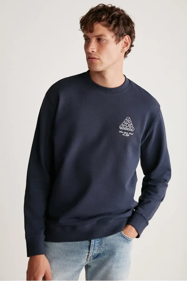 Regular Lacivert Tekli Sweatshirt - Lacivert
